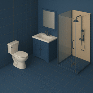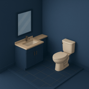 Installation of new toilet, floor-mounted vanity, and wall-mounted accessories